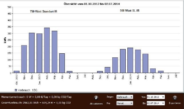 - Energiesparend noch einmal erheblich günstiger im Verbrauch >>> wir messen hier ca. 30% geringeren Stromkosten, als bei herkömlichen IR-Heizungen, sowie deutlichen Einsparungen zu den Gesamtkosten herkömmlicher Öl und Gasheizungen.