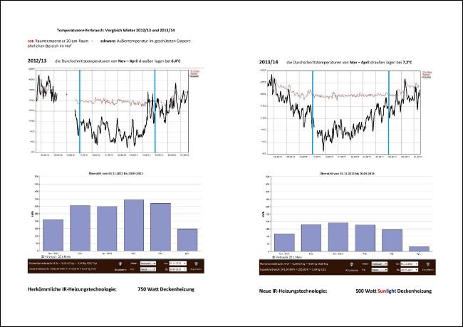 SunLight-Deckenheizung mit LED Lichteffekt Strom, - oder, im Neubau unschlagbar, Wasser-basiert über Wärmepumpe Die SunLight Infrarot-Deckenheizelement ist die innovative, dekorative, platzsparende und kosten-günstige Lösung für Ihr Heim. Effiziente Lösung für Neubau, Altbau oder Umbau mit Dekorations-charakter. Sehr große Heizkostenersparnis für große Räume, auch gegenüber bisherigen IR-Heizungen. (===> Ergebnisse unter Erfahrungen) Dieser IR-Heizungstyp heizt über seine sehr große Plattenoberfläche (bis 4,5 qm) mit einer geringen Oberflächentemperatur (ca, 35-40°C). Diese erreicht er mit nur 560 Watt Heizleistung. Die SunLight wird vorwiegend an der Decke montiert. Dadurch, und durch die geringe Temperaturdifferenz zur Raumluft, erzeugt dieser IR-Heizungstyp im Gegensatz zu ihren heißen Kollegen mit Oberflächentemperaturen von 70-110°C, fast gar keine Konvektion im Raum mehr. Die Luft im Raum wird von der IR-Platte nicht bewegt. Es kann also auch keine Kälte über Lufbewegung herangeführt werden. Hausstaub o. ähnliches wird nicht umhergewirbelt. Das macht die SunLight-Deckenheizung zur wohl besten Heizung bei Hausstaub-Allerien. Die SunLight heizt im Vergleich zu ihren heißen herkömmlichen "Kollegen" mit der 2 - 3 fachen Wärmestahlung (nach Claus Meier) bei gleicher Stromaufnahme. Dabei wird, wenn an der Decke aufgehängt, keine Konvektion verursacht. Dadurch kann auch mit geringeren Raumtemperaturen eine Behaglichkeit im Raum hergestellt werden.(Beispielbild: im Winter kann man sich auch bei um die 0 °C an einem windgeschützten Platz in der Sonne wohlfühlen/sonnen ohne zu frieren) >>> Kurzpräsentation zum Download Vorteile: