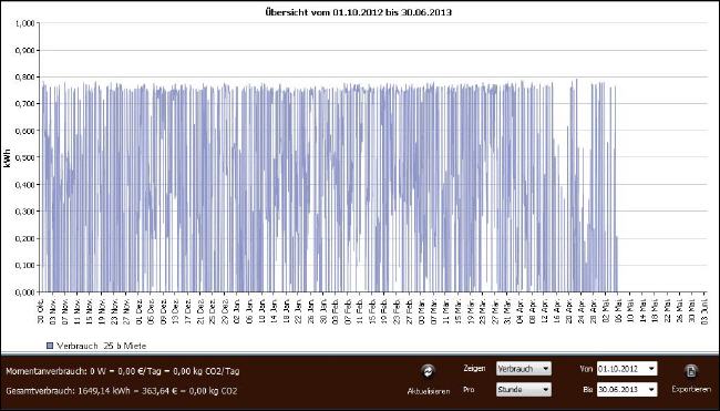 Ab Oktober 2012 haben wir zu Dokumentationzwecken ein Netzwerk aufgebaut, das zu jedem installierten Infrarotheizkörper den Stromverbrauch dokumentiert. So kann der Stromverbrauch für jede IR-Heizung, jeden Raum, jede Wohnung pro Stunde, Tag, Monat, Jahr etc.... dokumentiert werden. |