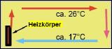 Meist nutzt man fossile Brennstoffe wie Kohle, Gas, Öl, Holz oder auch Strom dazu, Wasser auf eine gewünschte Temperatur zu erhitzen. Das erhitzte Wasser wird gespeichert und bei Bedarf durch mehr oder weniger gut isolierte Rohre an einen Heizkörper geleitet, der dann seinerseits die umgebende Luft erwärmen soll. Die erwärmte Luft soll dann endlich den Menschen erwärmen. Die Raumluft gerät jedoch durch dieses Verfahren zunächst in Rotation. Die heiße Luft strömt vom Heizkörper nach oben, unter der Decke wird es zuerst schön warm, dann fällt die warme Luft durch zunehmende Abkühlung an der gegenüberliegenden Wand herunter und strömt als kühle Luft am Fußboden entlang zurück zum Heizkörper und erwärmt sich wieder. Dabei transportiert sie auch eine Menge Staub und Pollen durch den Raum, nicht gut für Allergiker und Asthmatiker. Nur ein kleiner Teil der investierten Energie kommt dann irgendwann einmal den Bewohnern der beheizten Räumlichkeiten zu Gute. Eine unglaubliche Verschwendung! |